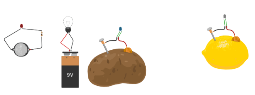 B Tinkercad sınıfındaki “Temel Devre Tasarımları” uygulamasını tamamlayın. (4 farklı enerji kaynağını kullanarak LED ve elektrik ampulünü yakın.)